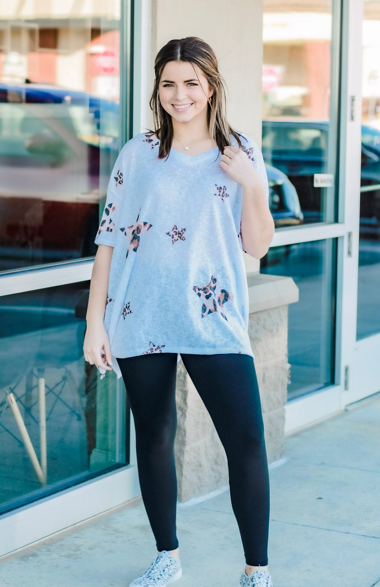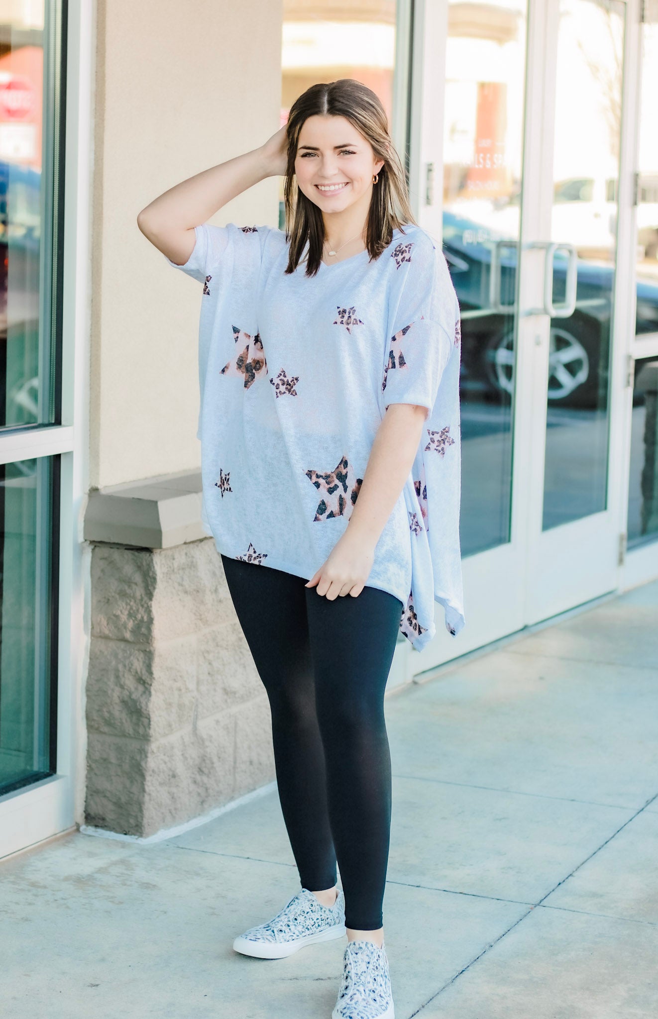 Your head will be floating in the stars when you put this top on in the morning! It flows in all the right places to give you that great oversized look. The fabric is soft and comfortable enough to keep you going all day whether you're lounging around or out running errands. Pair it with your favorite denim or leggings, this top needs nothing else!