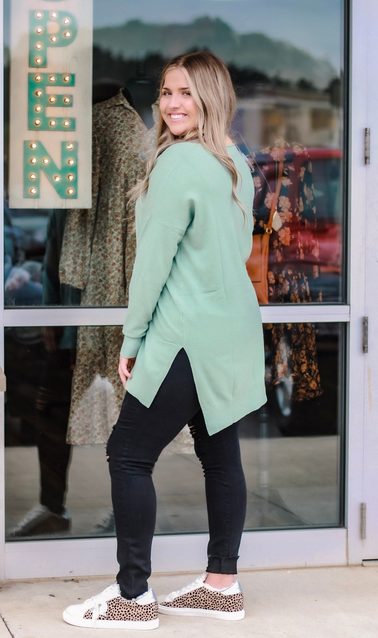You'll be protected from the ice in style with this gorgeous sweater! It's long and cozy and oh so comfortable. Pair it over your favorite skinny jeans or leggings with your favorite pair of booties, and you'll be off for your day in style!