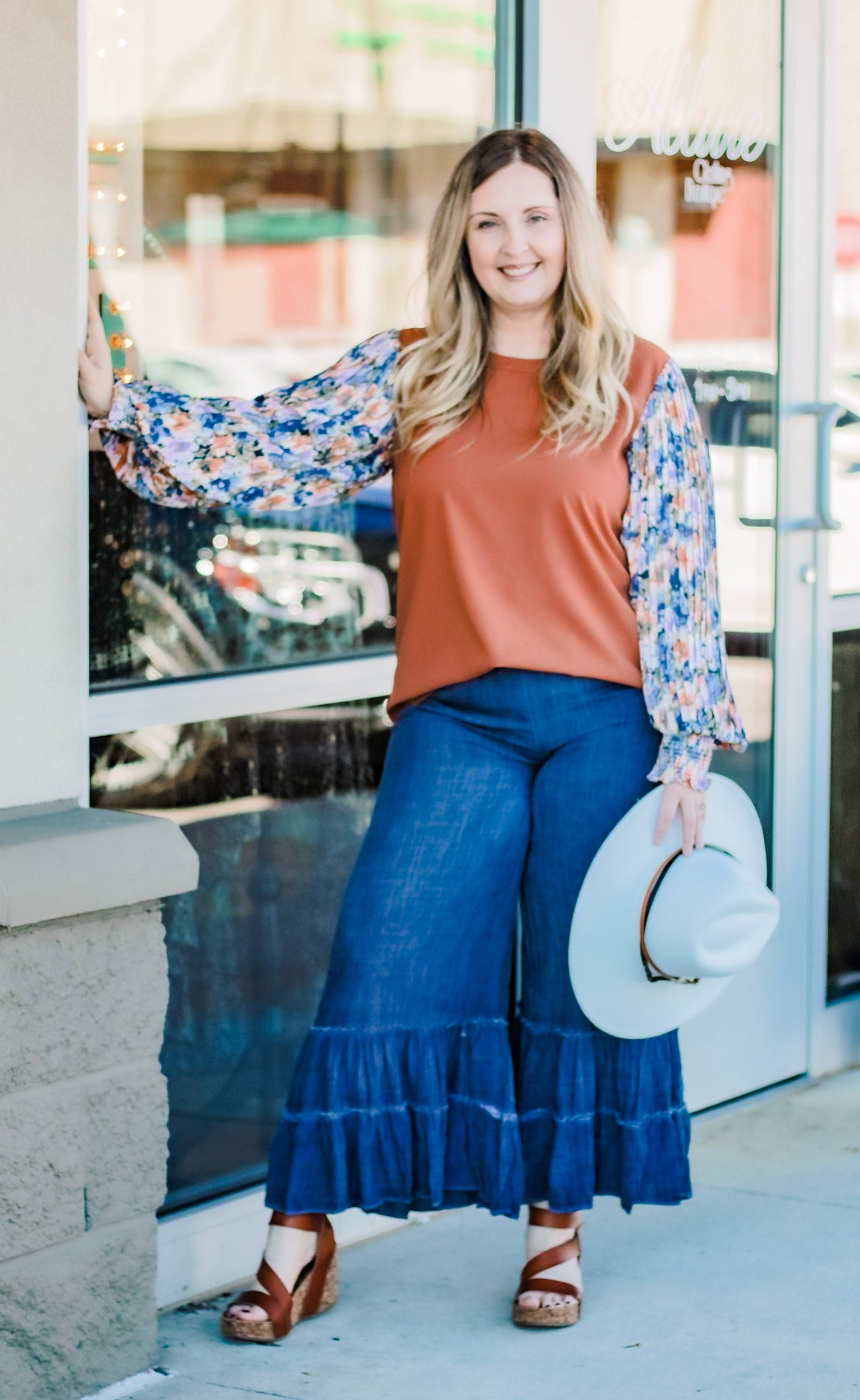 We are here for these fun pants! The wide legs almost look like a skirt, especially with the gorgeous ruffle hemline.The denim color allows you to pair all of your favorite tops with ease. Add some accessories and cute shoes, and you'll be confident and stylish as you walk out your door.