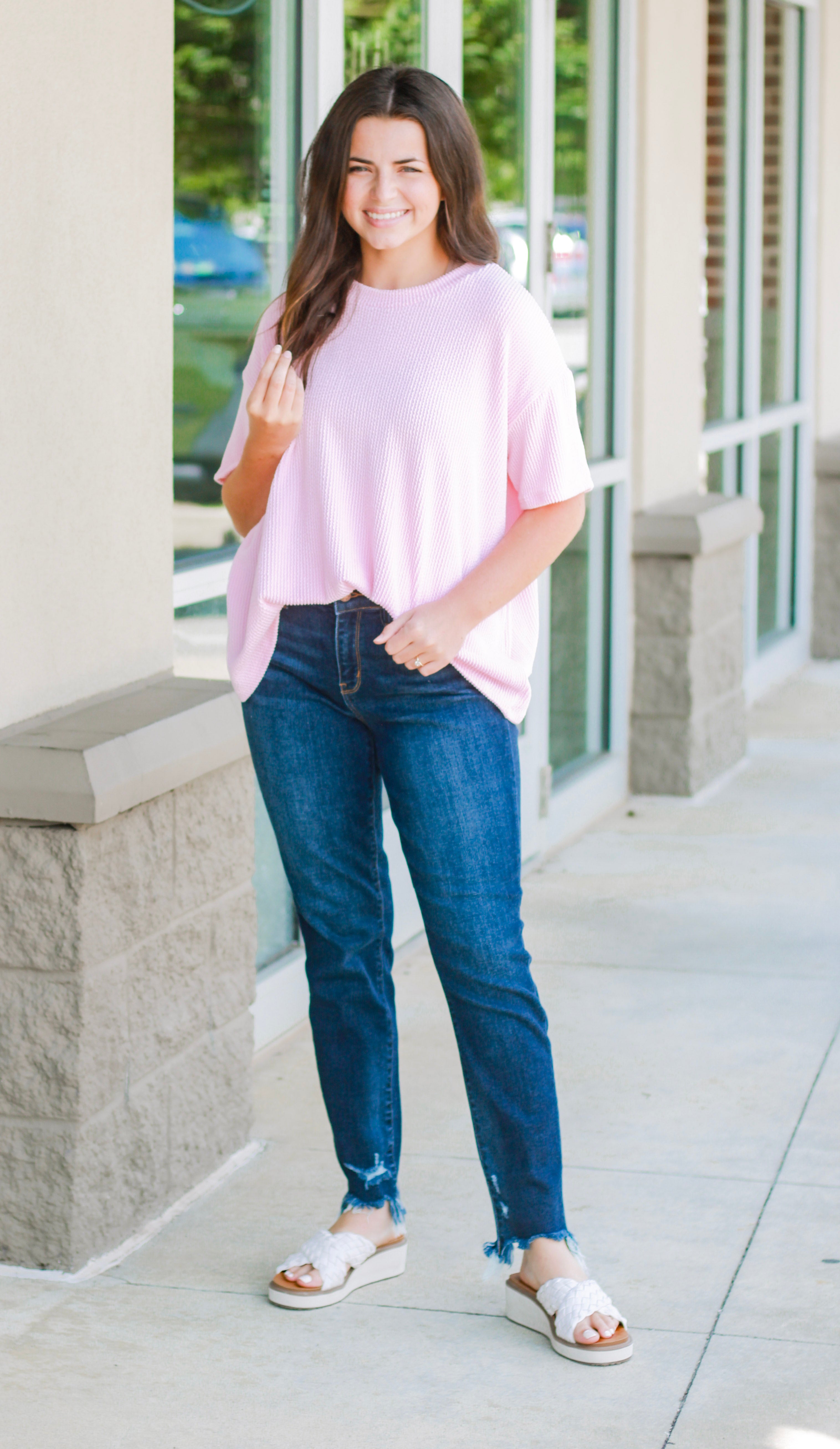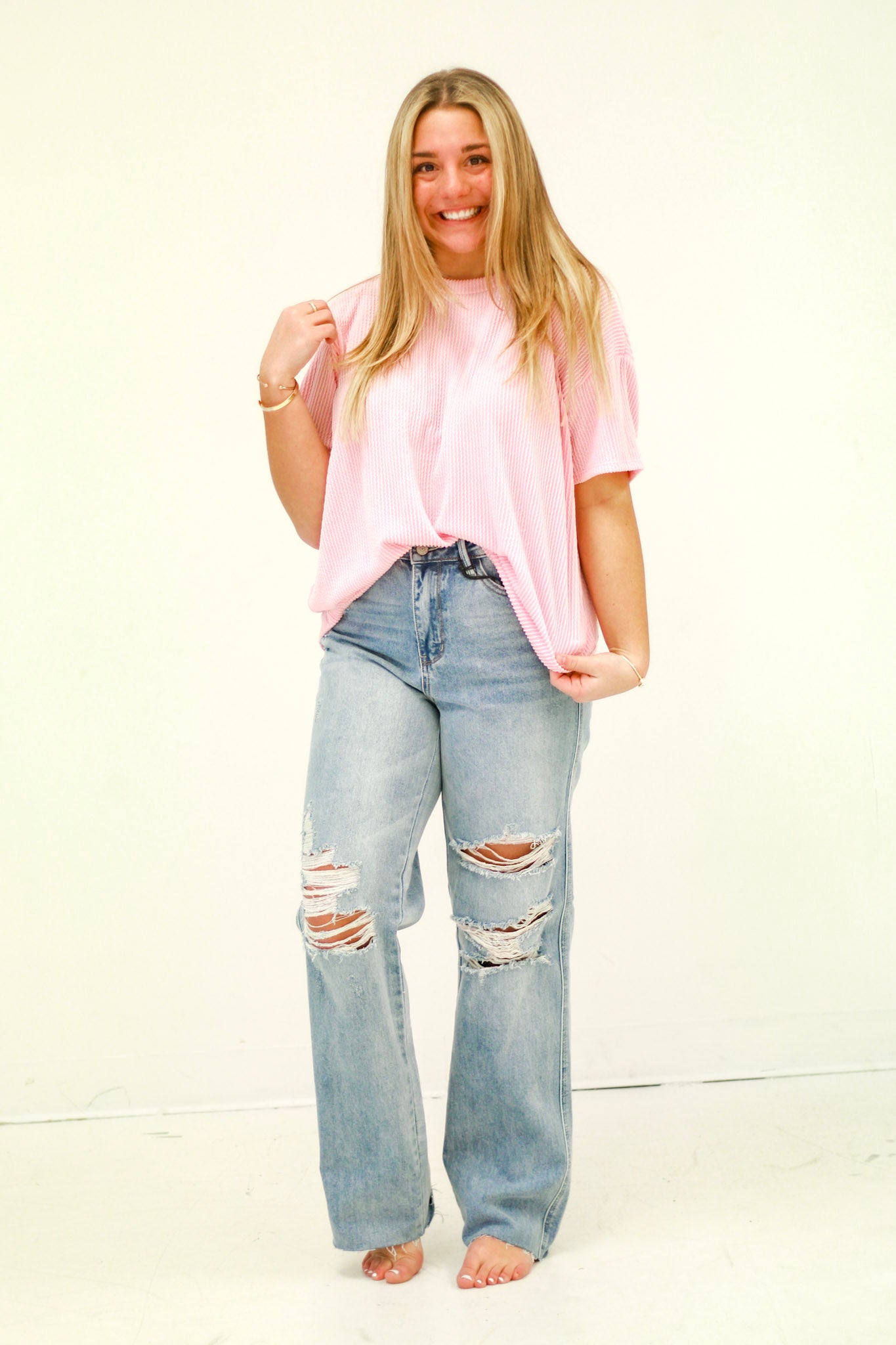- Pink ribbed top