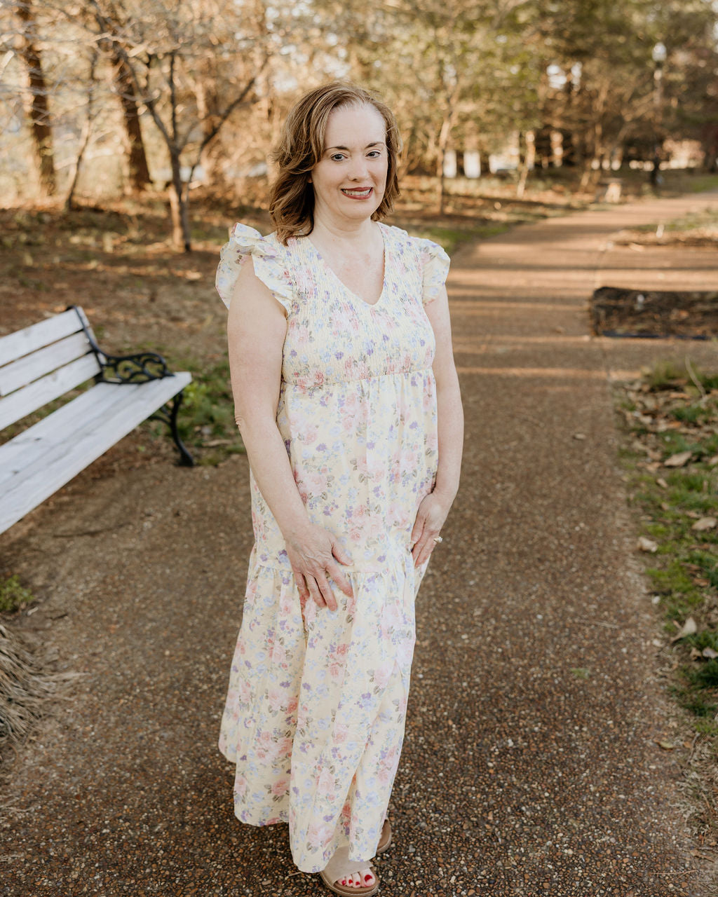 - Pretty floral pattern with smocked detail