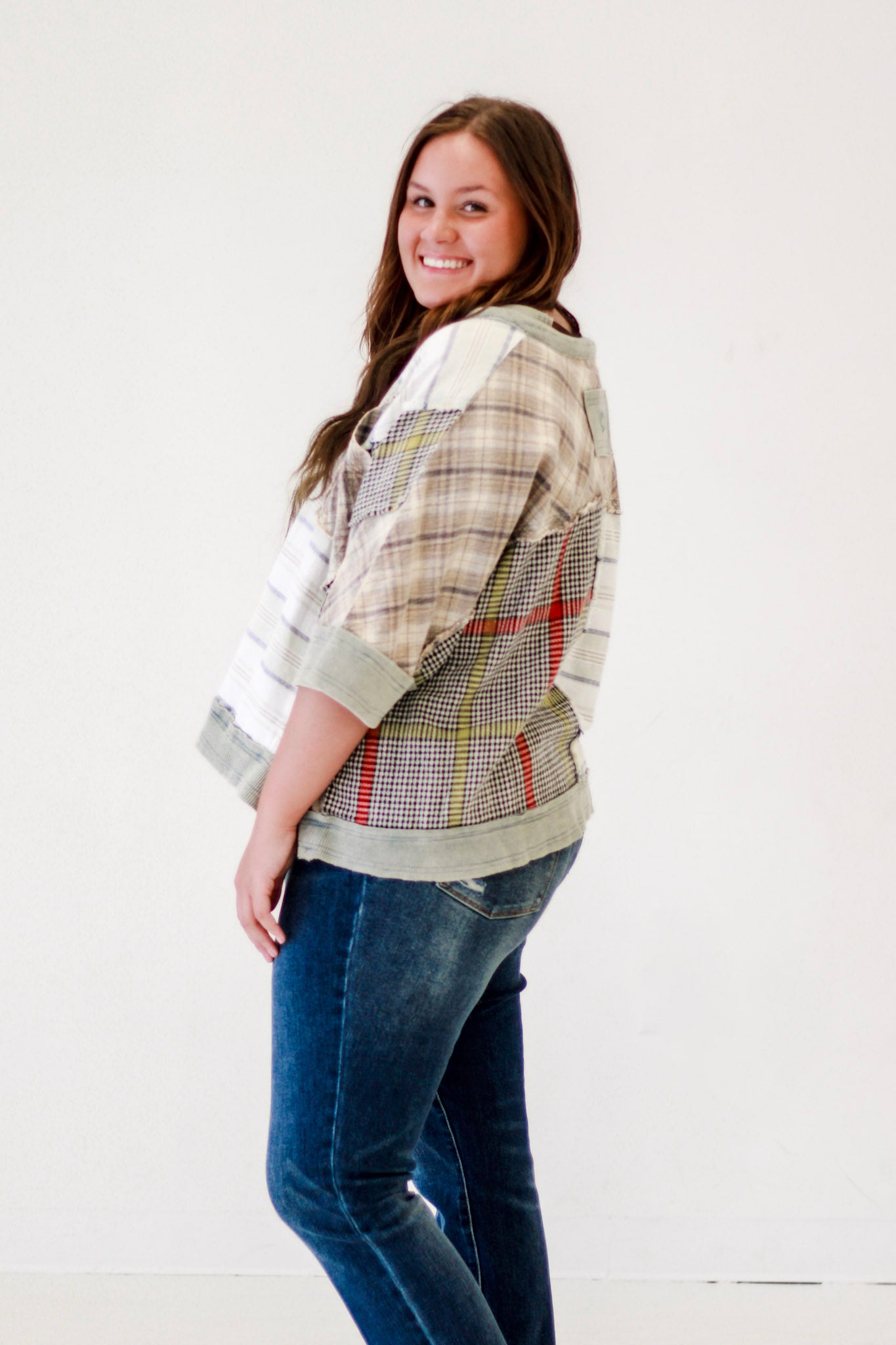 No Mixed Signals Boxy Button Up Top by Oli & Hali in Slate