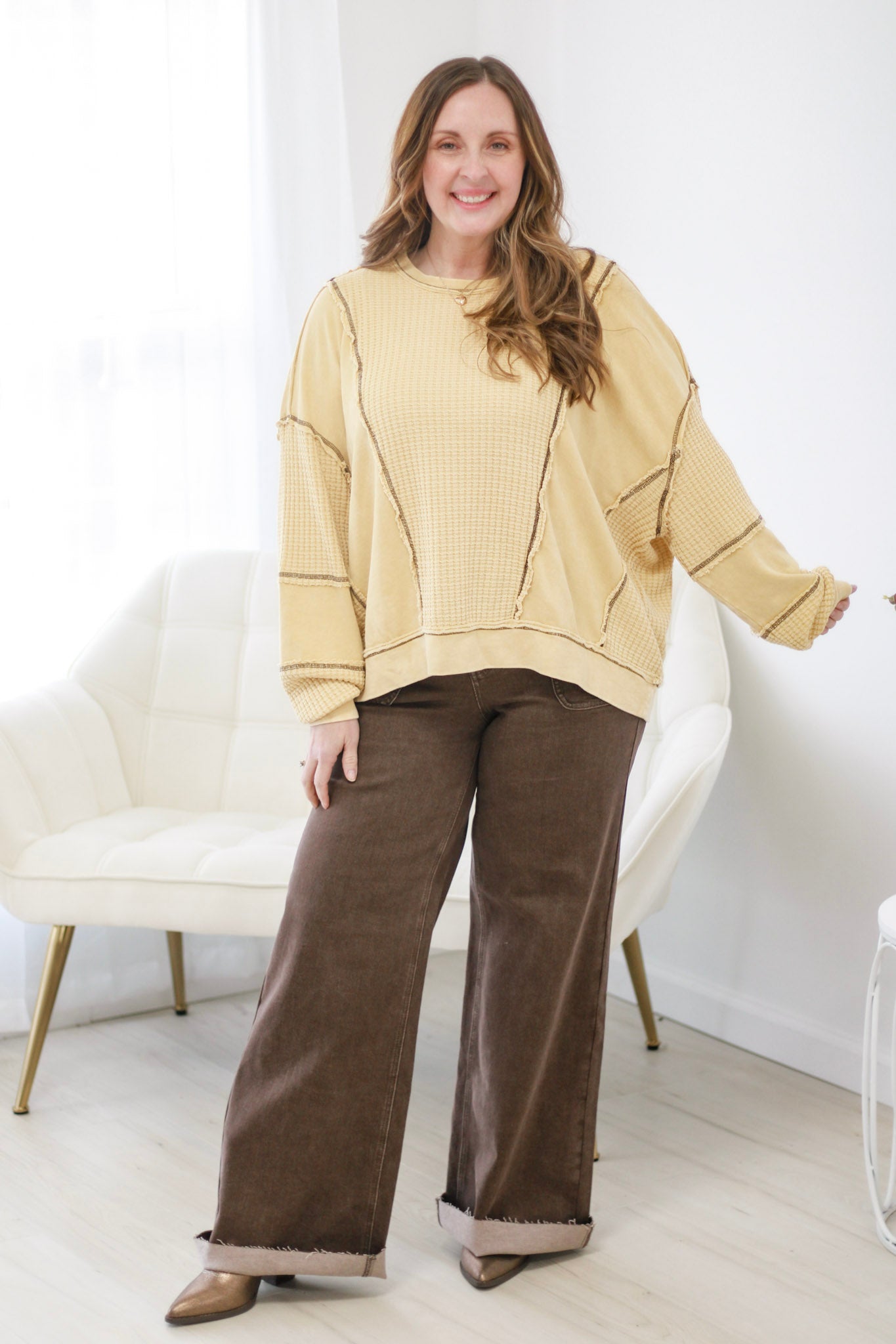 Picked For You Waffle Knit Pullover in Butter Yellow