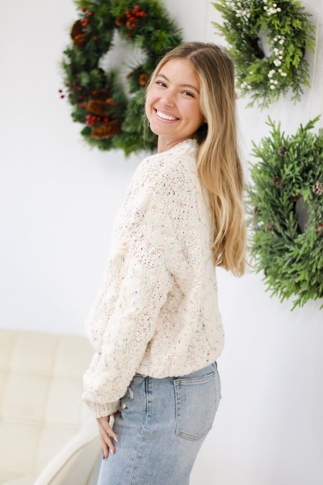 - Long sleeve round neck sweater