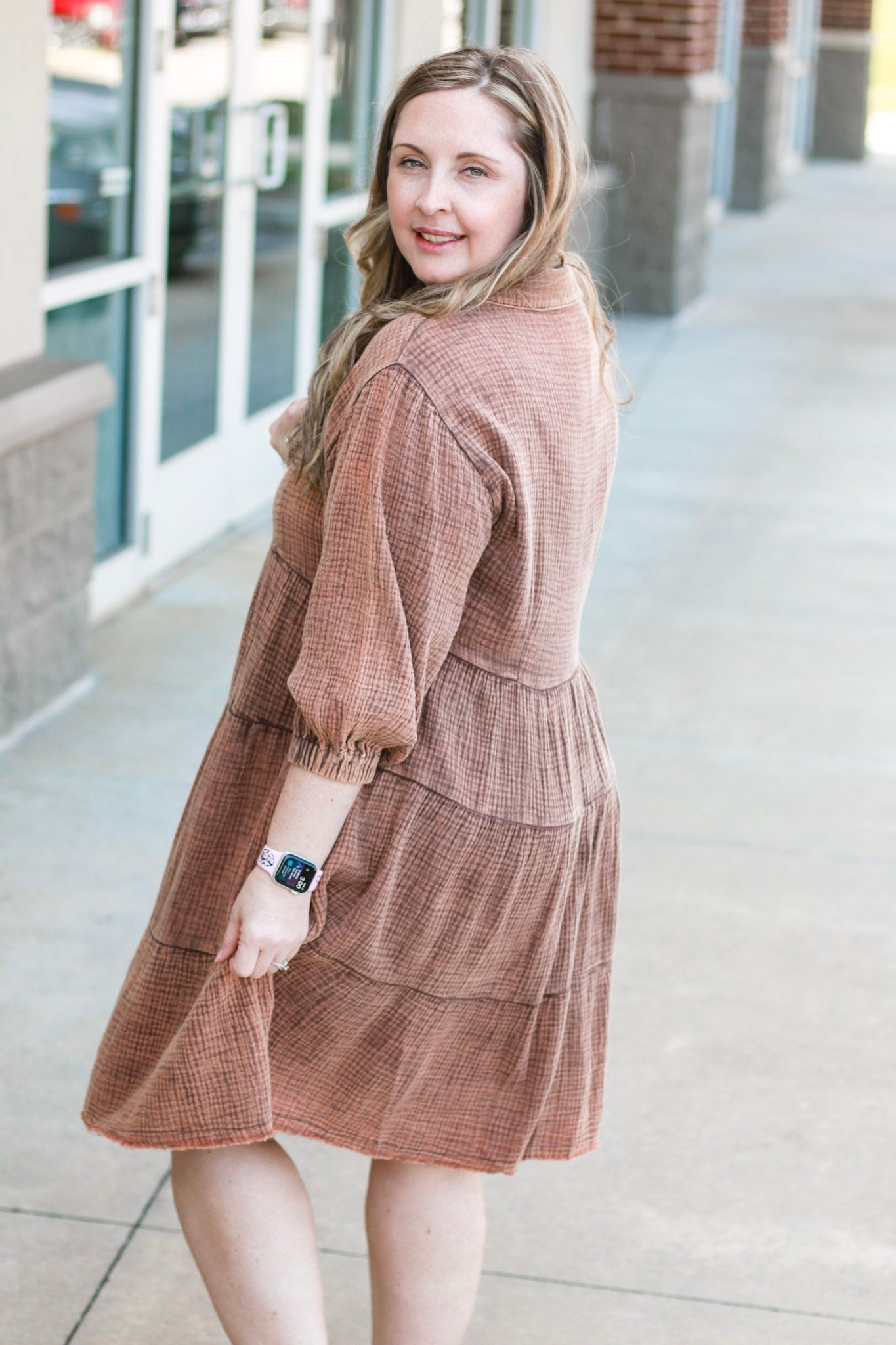 - Chocolate brown midi dress
