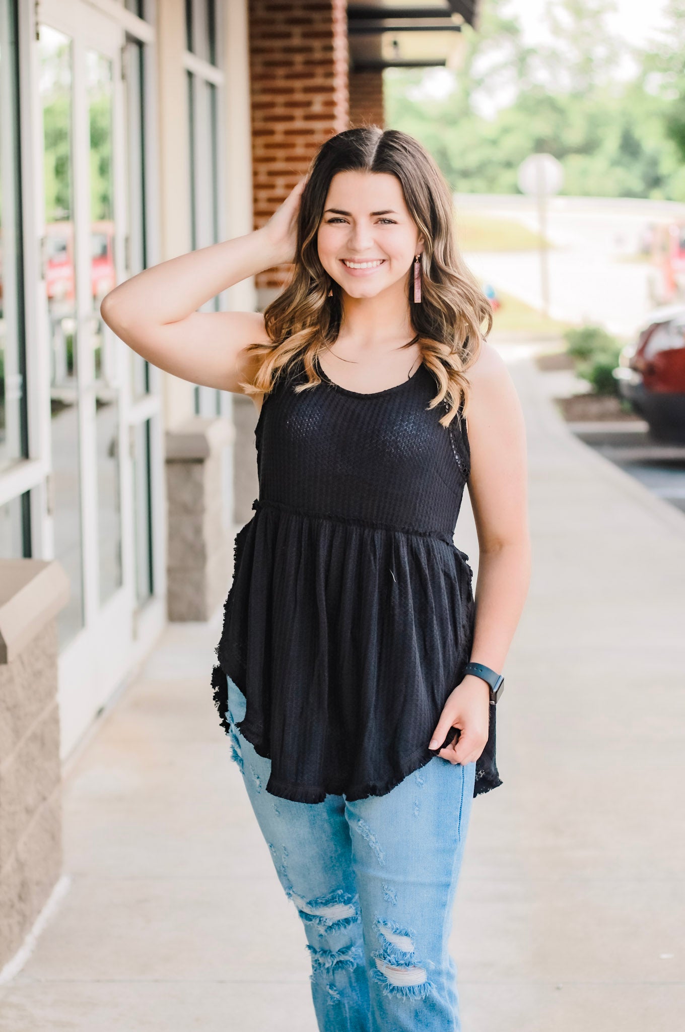 - Pair this tank with jeans and a necklace